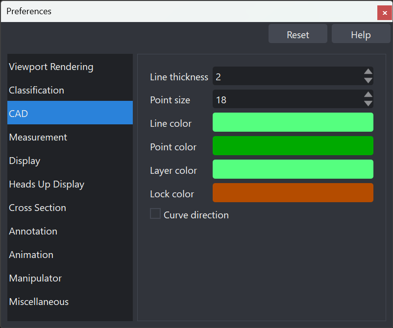 Line thickness is a global parameter that applies to all curves, whether imported as DWG/DXF in Fast Rendering or Editing mode, or drawn directly in NUBIGON. You can adjust this setting under Edit > Preferences > CAD.