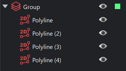 Ungrouped curves are displayed with the Line color set in Edit > Preferences > CAD, and ungrouped points are colored by the Point color. A newly generated group object will inherit the Layer color.